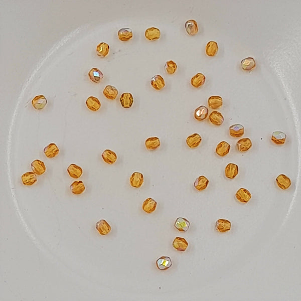 Czech Fire Polished Glass 3mm Faceted Round Transparent Dark Yellow AB 20 Pack