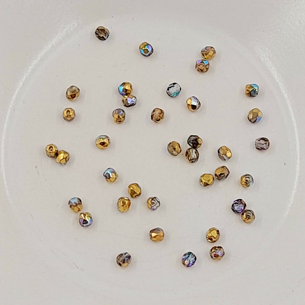 Czech Fire Polished Glass 3mm Faceted Round Variegated Gold Crystal AB 20 Pack