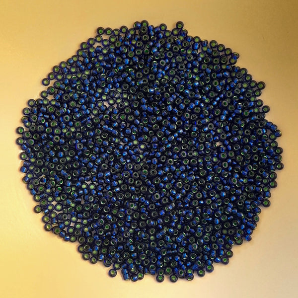 Miyuki Seed Beads Size 11 Metallic Emerald Lined Dark Sapphire 7.5gm Bag