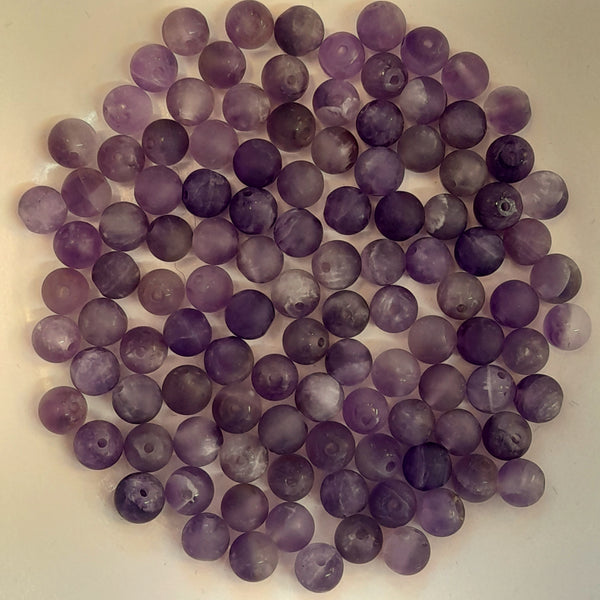 A 6mm matte semi-precious gemstone with approx 1mm internal hole. Colours are natural, not dyed. Amethyst is said to have the ability to help decision making, and dispels anger, fear, and anxiety.
